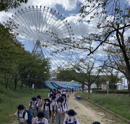 頑張って登山した天保山の高さに驚きました。楽しい時間もあと少しです。楽しい思い出を大切にして学校へ帰ります。