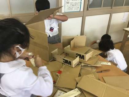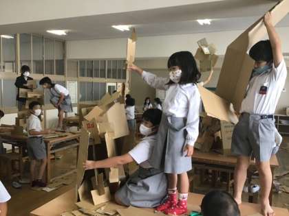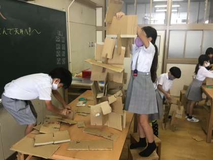 組んで組んで,どんどんつなげていく造形遊びをしました。