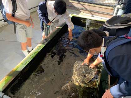 タッチプールでのふれあいも...ウミガメだ!