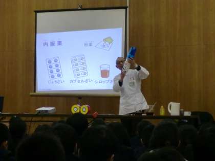 本日3時間目に「薬の正しい使い方講座」がありました。学校薬剤師の先生から、普段の病気を治す時に服用する薬から、危険な薬物の話まで、薬に関する大切な話を聞くことができました。