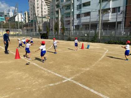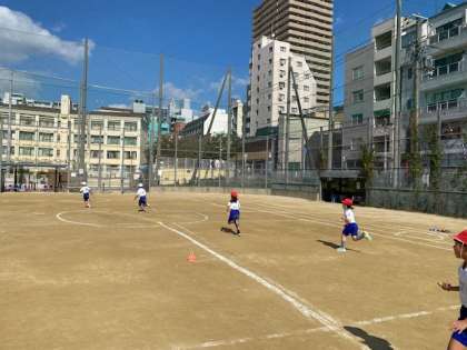 トラックを使ってのリレーは、初めてだったので、子どもたちは大興奮でした。