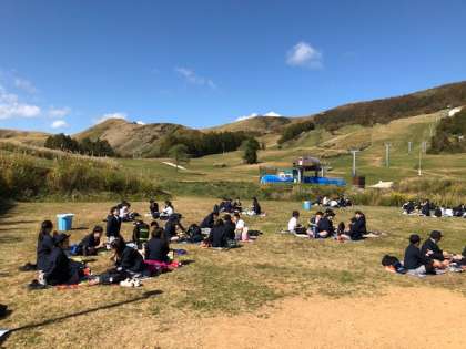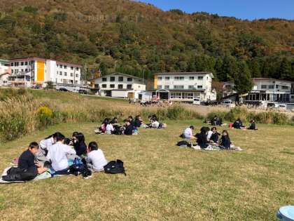 宿舎前の広場で、昼食です!
