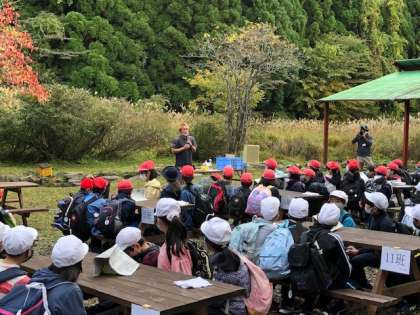 野外炊飯場で、ストーンクラフト(勾玉作り)です。好きな形の下絵を描いて、後はひたすら削りましょう!