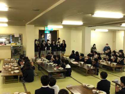 最後の食事は、みんな大好きカレーライスです。おかわりする子の行列です!
