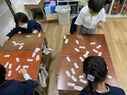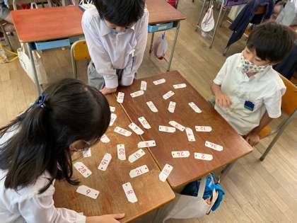 2・3・4・5のだんの学習が終わったので、九九カードを使ったカードゲームを行いました。