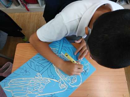 木版画3年目の今年は、多色刷り木版画にチャレンジです。今までと異なり、線彫りをします。