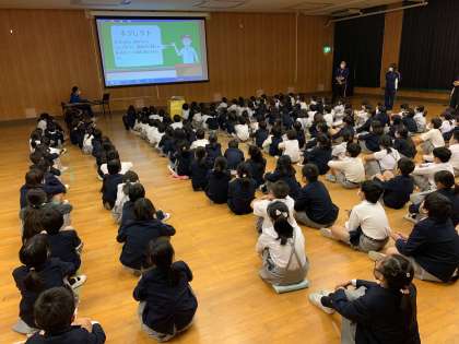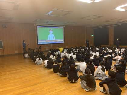 「児童虐待とは?」という話から始まり、いやな思い、怖い思いをしたときは、我慢せずに先生や周りの大人に相談しよう、と呼びかけました。