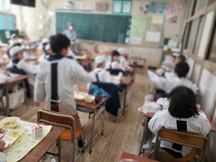 給食の様子です。どのクラスも前を向き、静かに食べています。