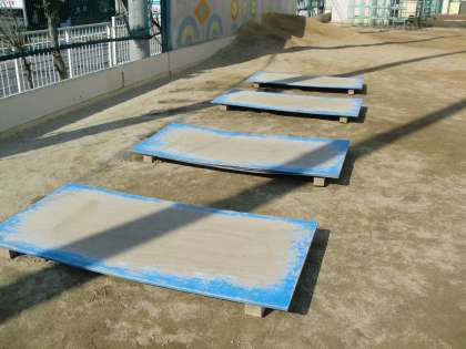 半年ほど前から使い始めた「なわとび練習台」です。児童数が多いことや、なわとびを積極的に練習する子どもたちが多く、半年でこの状態です。
