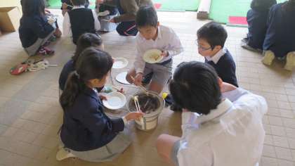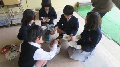 使い方を学習し、昔のくらしの体験をしました。「炭は時間がががるけれど、焼いたおもちはとてもおいしい」と温かさも体感することができました。
