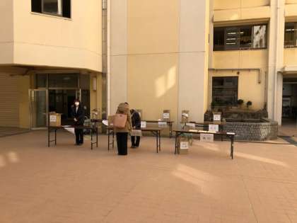 新型コロナウイルス感染拡大防止のため2部制での実施となりました。例年は講堂での物品販売についても、多目的ホールで行ってもらいました。
