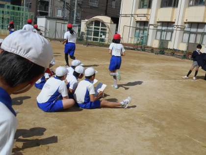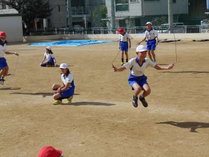 寒い中、持久走となわとびを行い、ほっぺたを赤くしている姿がありました。