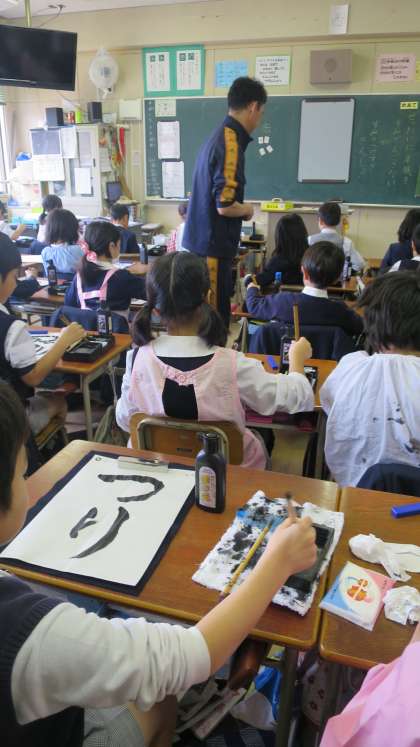 難しいひらがなに挑戦しました。2文字を書くこともはじめてでした。どのクラスも静かに集中して取り組みました。