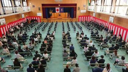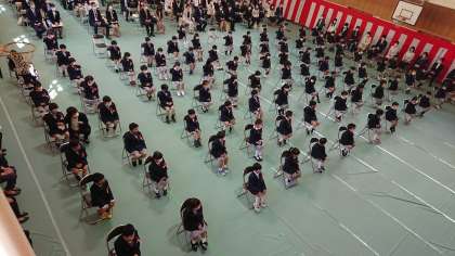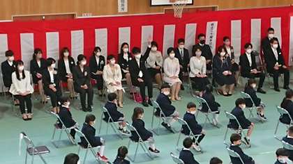 校長先生と初対面!みんなお話をしっかり聞いています。