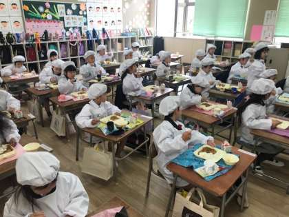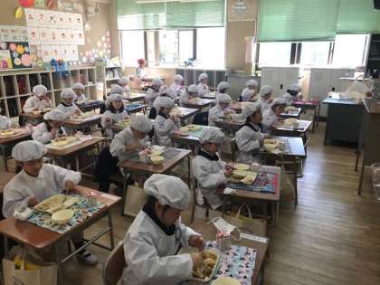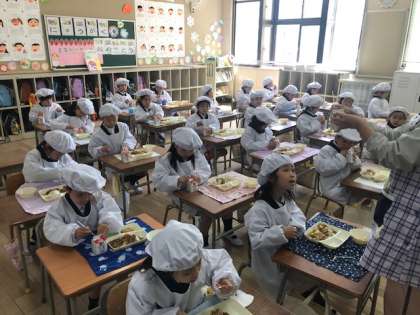 今日のメニューは、カツカレーライス、フルーツ白玉、牛乳