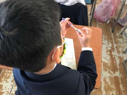 1年生では、えんぴつの正しい持ち方を学習しています。