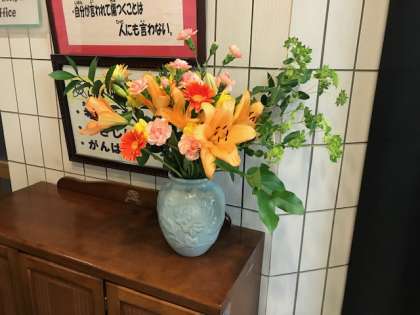 校長室の前にとてもきれいな花が飾ってあります。