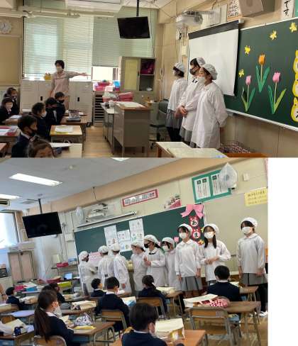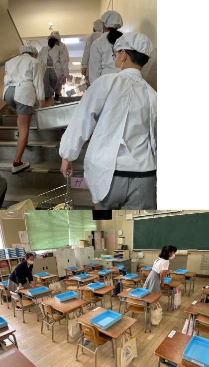 3時間目が終われば、休み時間中に牛乳や食器を運びます。