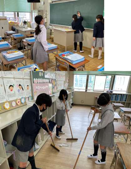 そうじの時間は、1年生が下校の準備をしているので、忘れ物をしていないか確かめながら掃除をしています。