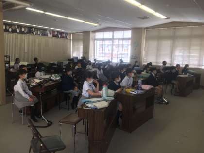 4年生になって初めての音楽! 真剣に先生の話を聞いています。