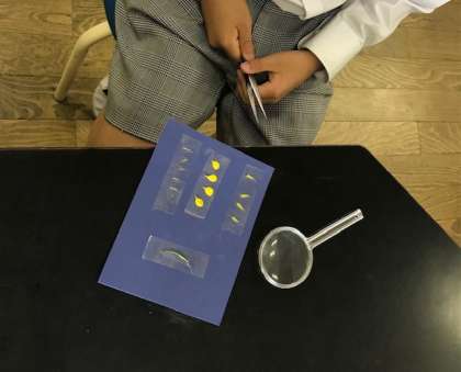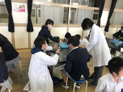 担当の先生は2人とも、科学者のような白衣姿で指導しています!