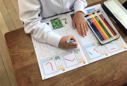 先生から教わった上手なえんぴつの持ち方でがんばっていますね。