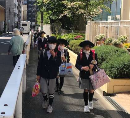 いつもの集団登校ではありませんが、近所で誘い合いながら登校してきてくれました。