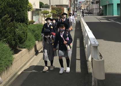 今日もいい天気の中、子どもたちが誘い合わせて登校してきました。