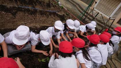 きょうは、サツマイモのなえをうえました。