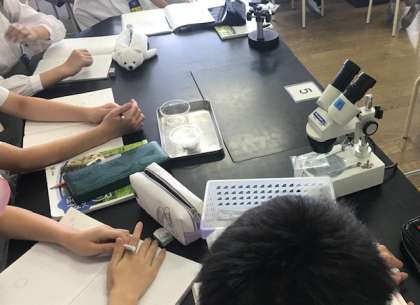 5年生が理科の時間に、メダカのたまごの観察をおこないました。