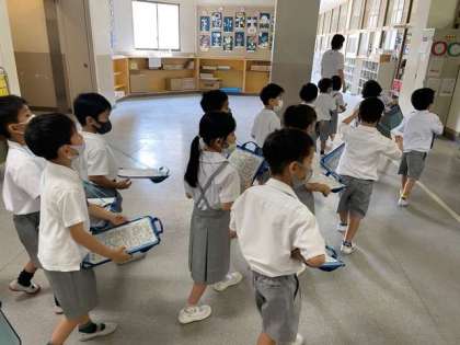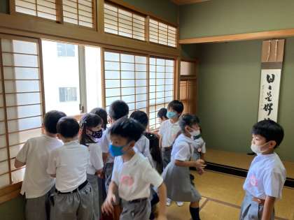 屋上のプールや理科室、家庭科室や和室などいろいろな教室を探検しました。