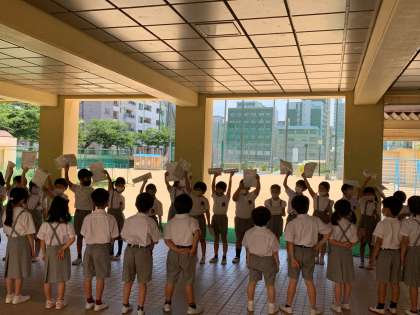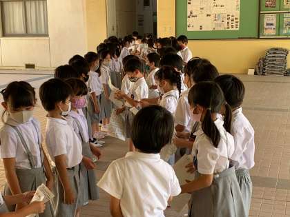 1年生のみなさんに、学校たんけんでつかうための地図と、心のこもったお手紙をわたしました。