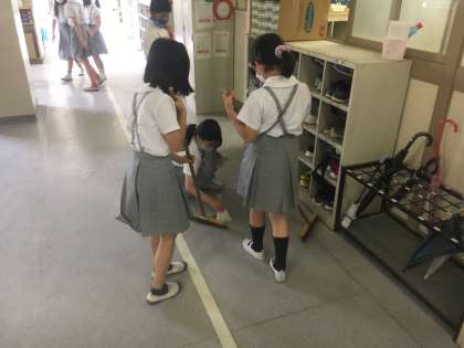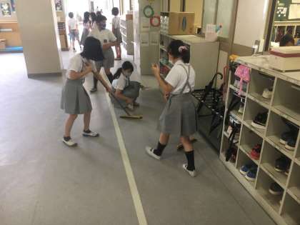 雨上がりの次の日に、ろう下がドロだらけになっていましたが、