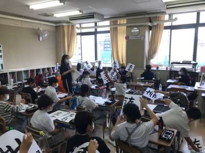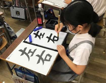 4年生は、国語の物語文における登場人物の気持ちの読み取りや、毛筆書写「左右」の学習をおこないました。