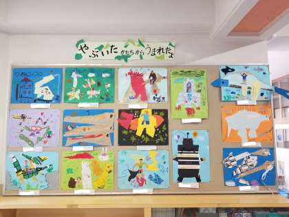 図工の学習で「やぶいたかたちからうまれたよ」をしました。