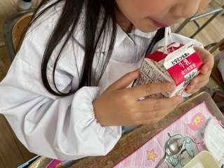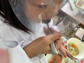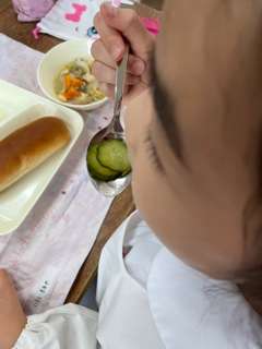 1年生 給食指導「のこさず がんばってたべてるよ!」