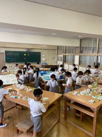 1年4組 図画工作科「造形遊び どんどんならべて」