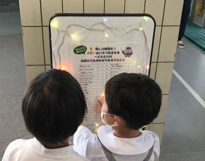 職員室前のランキングボードには、新井先生お手製のきらきらライトがパワーアップされて灯されました。