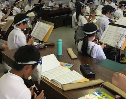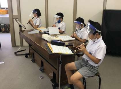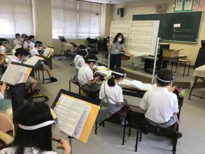 フェイスシールドを活用して、感染症対策をきちんととりながら、しっかりと学習に励んでいます。