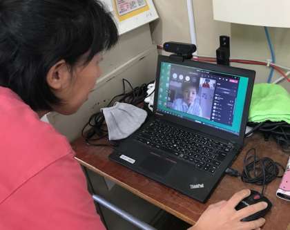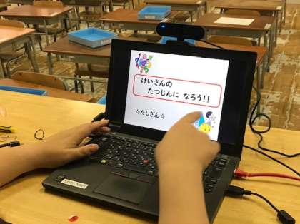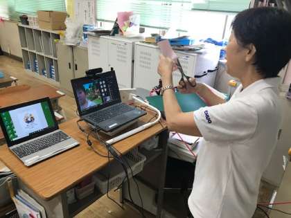1年生の先生が一生懸命に作ってくれたスライド教材を画面上で子どもたちと共有しながら、みんなで楽しくオンライン学習をおこないました。