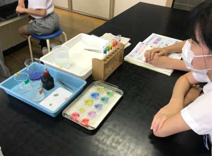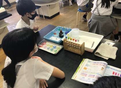 赤・紫・青・緑・黄など、さまざまな色の変化を楽しみながら、学習を深めることができました。