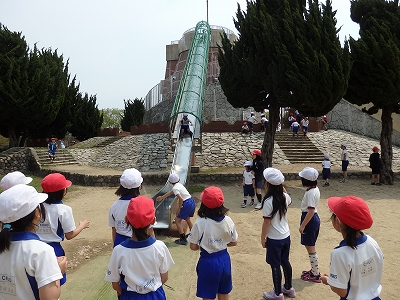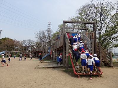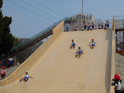 大きくて少し急なすべり台と、ながーいすべり台が、もう大人気!みんな、何回もすべっていました。