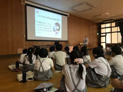 学校薬剤師の塩田先生に来ていただき、5年生に「くすりの正しい使い方講座」をおこなっていただきました。
