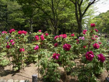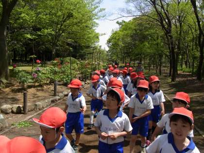この時期は、ぼたんやしゃくなげの花が見頃だそうです。きれいな花が咲く中を、お散歩しました。木々の間を通り抜け、とても気持ち良かったです。近くの池には、大きなコイとカメがたくさん!みんな、興味津々でした。