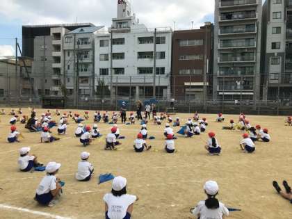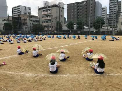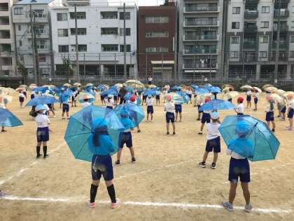 透明の傘の花が広いグラウンドいっぱいに咲くようすは、とてもきれいです!