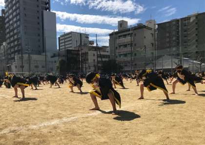 しっかりと腰を落とした姿勢で力強く舞う姿は、さすが高学年!と感じさせられます。