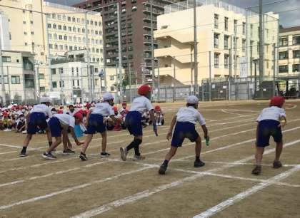 バトンパスの際に息を合わせて、しっかりつなぐようにがんばりました。
