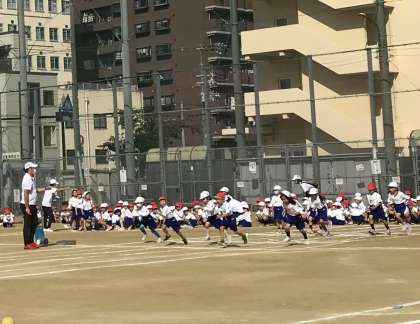 まずは、1年生にとって小学校で初めての競技、かけっこです。