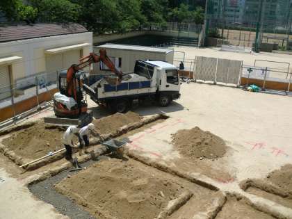 今日から重機も入り、新しい学習園の設置工事が着々と進んでいます。