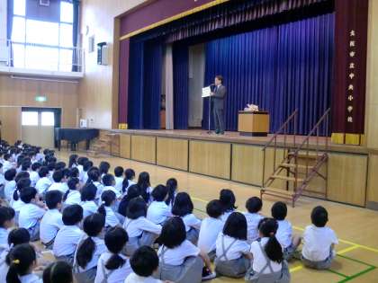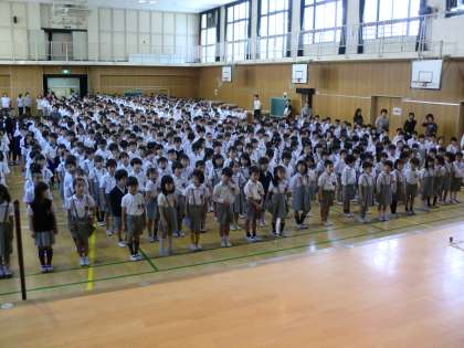 今年度より、月曜日の児童朝会は講堂で実施しています。